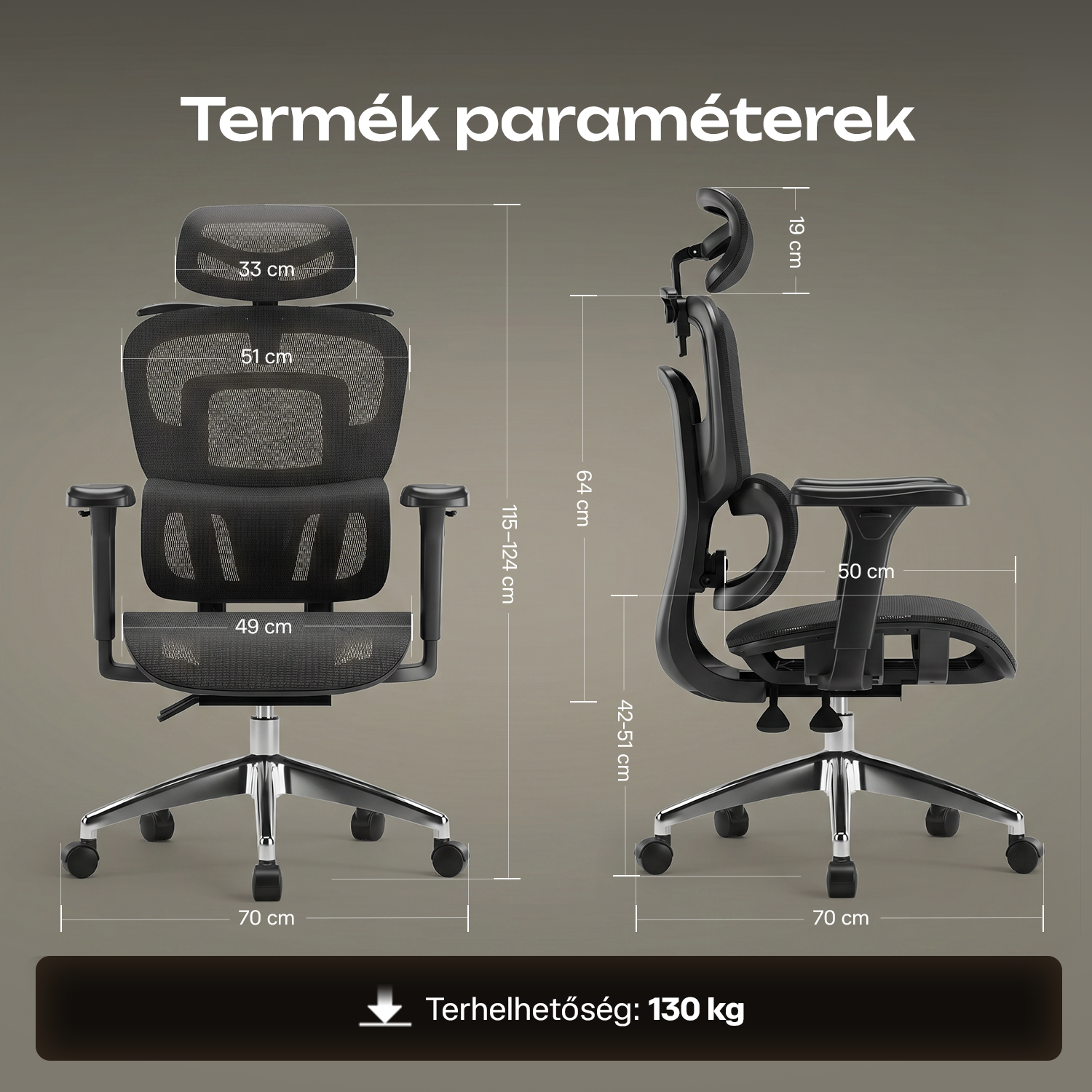 Operadlo možno sklopiť až do 135°, takže počas práce môžete jednoducho prejsť do relaxačnej polohy. Sedadlo má rozmery 49 × 50 cm a výšku nastaviteľnú v rozmedzí 42 – 51 cm. Sieťovaný „hollow out“ dizajn zaručuje výbornú priedušnosť a tvarovaná predná časť poskytuje pohodlnú oporu.